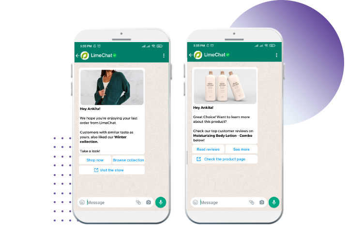 Send videos, images, and documents for a complete customer experience. Boost engagement with interactive buttons, quick replies, and dynamic lists.
